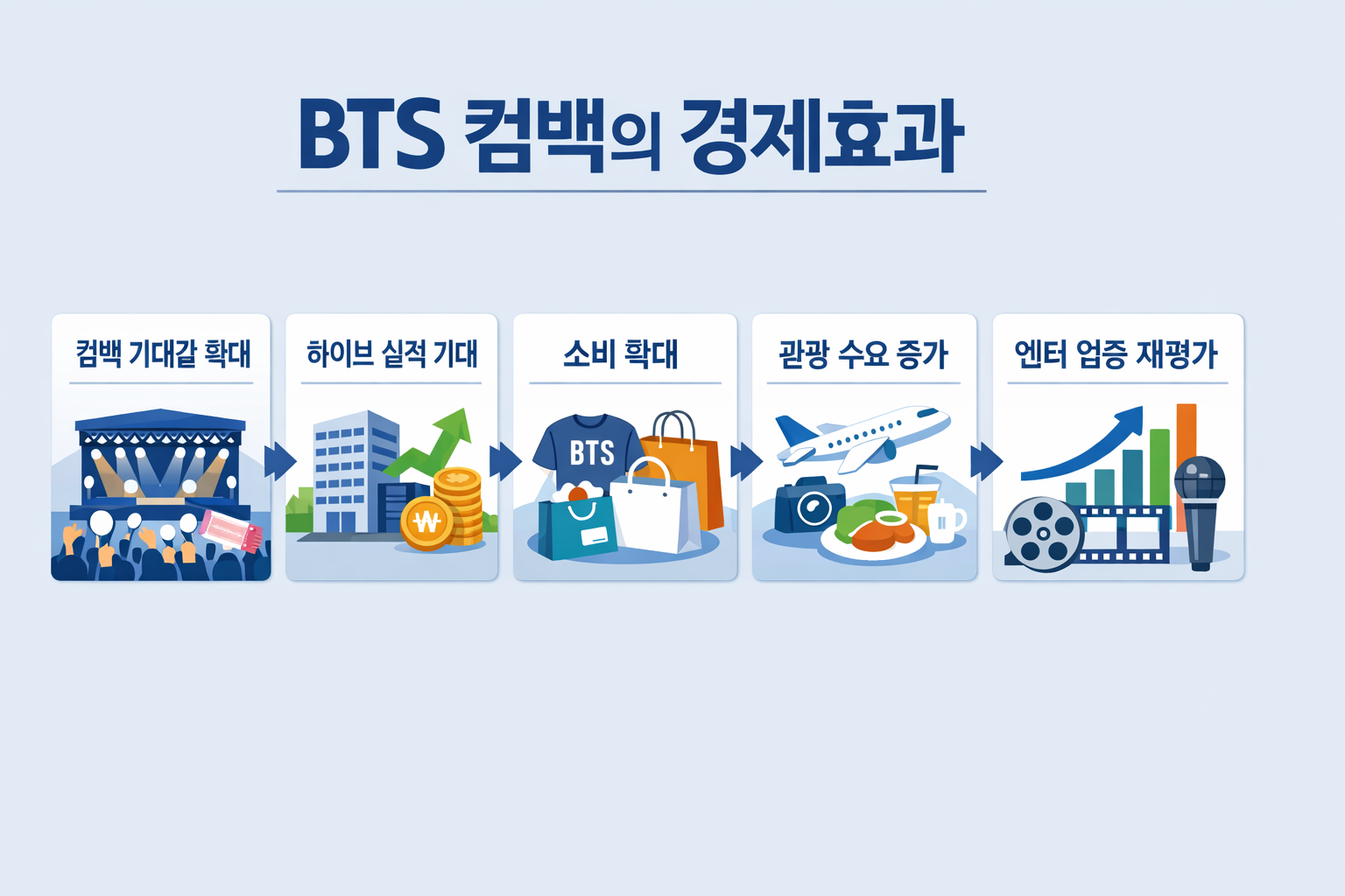 그냥 유명한 팀의 복귀 정도가 아니라, 공연과 음반, 굿즈, 플랫폼, 관광까지 한 번에 연결될 수 있는 구조라면 시장이 관심을 가질 만한 이유가 충분합니다. 특히 한국 콘텐츠 산업이 실제 경제에 어떤 영향을 줄 수 있는지를 보여준다는 점에서도 의미가 작지 않다고 봅니다.